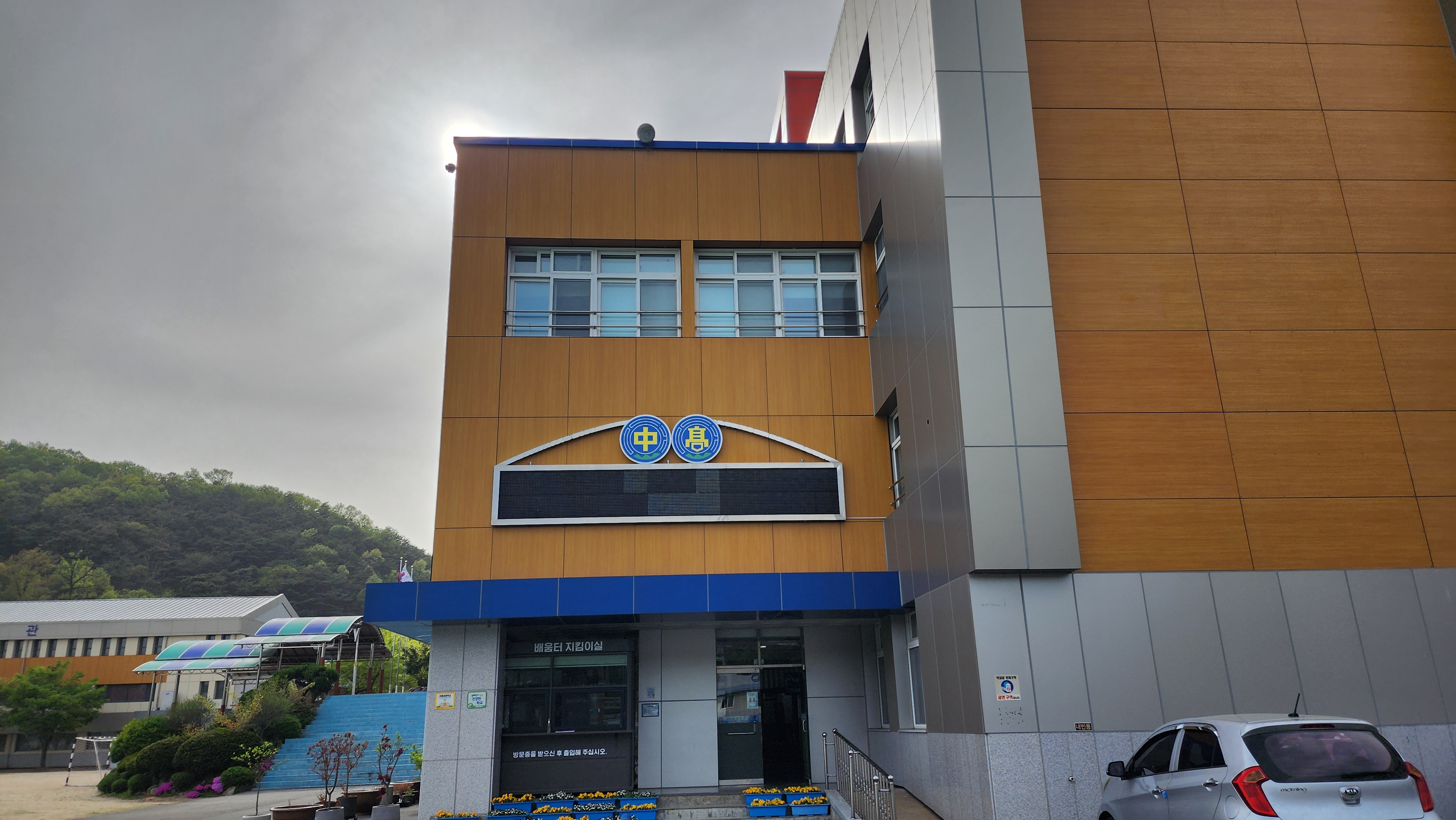 교문에서 들어오는데 예뻤다.