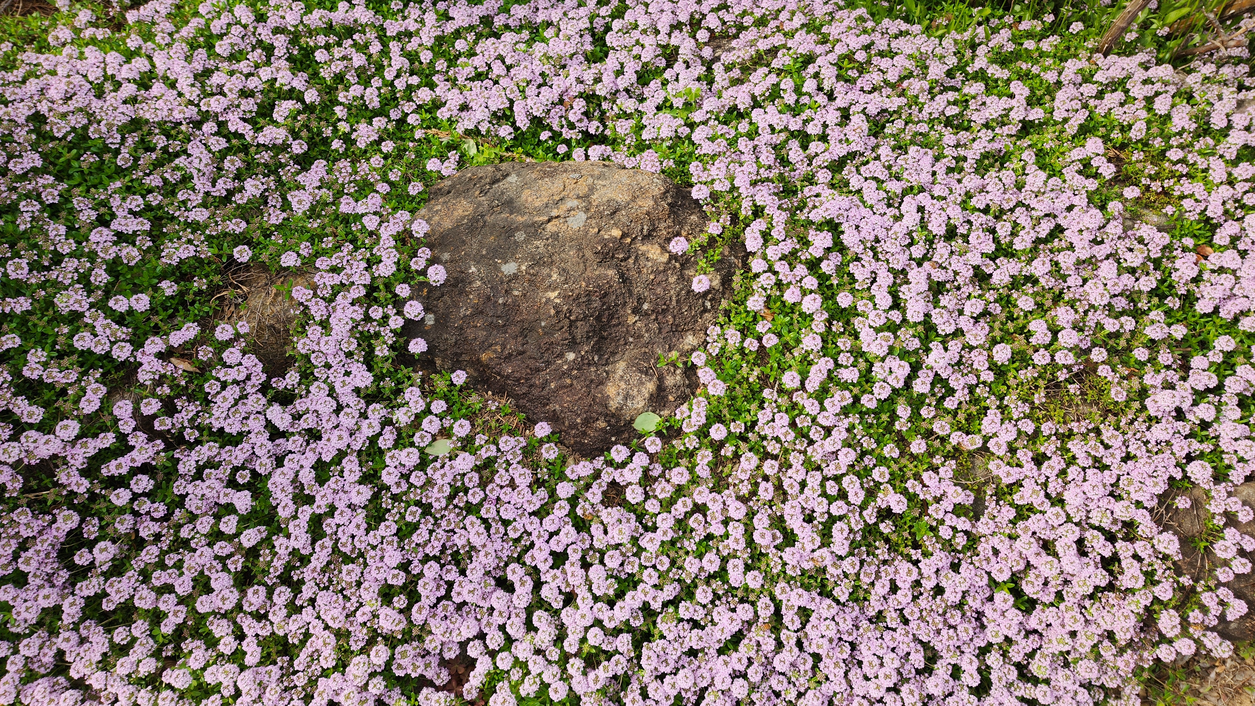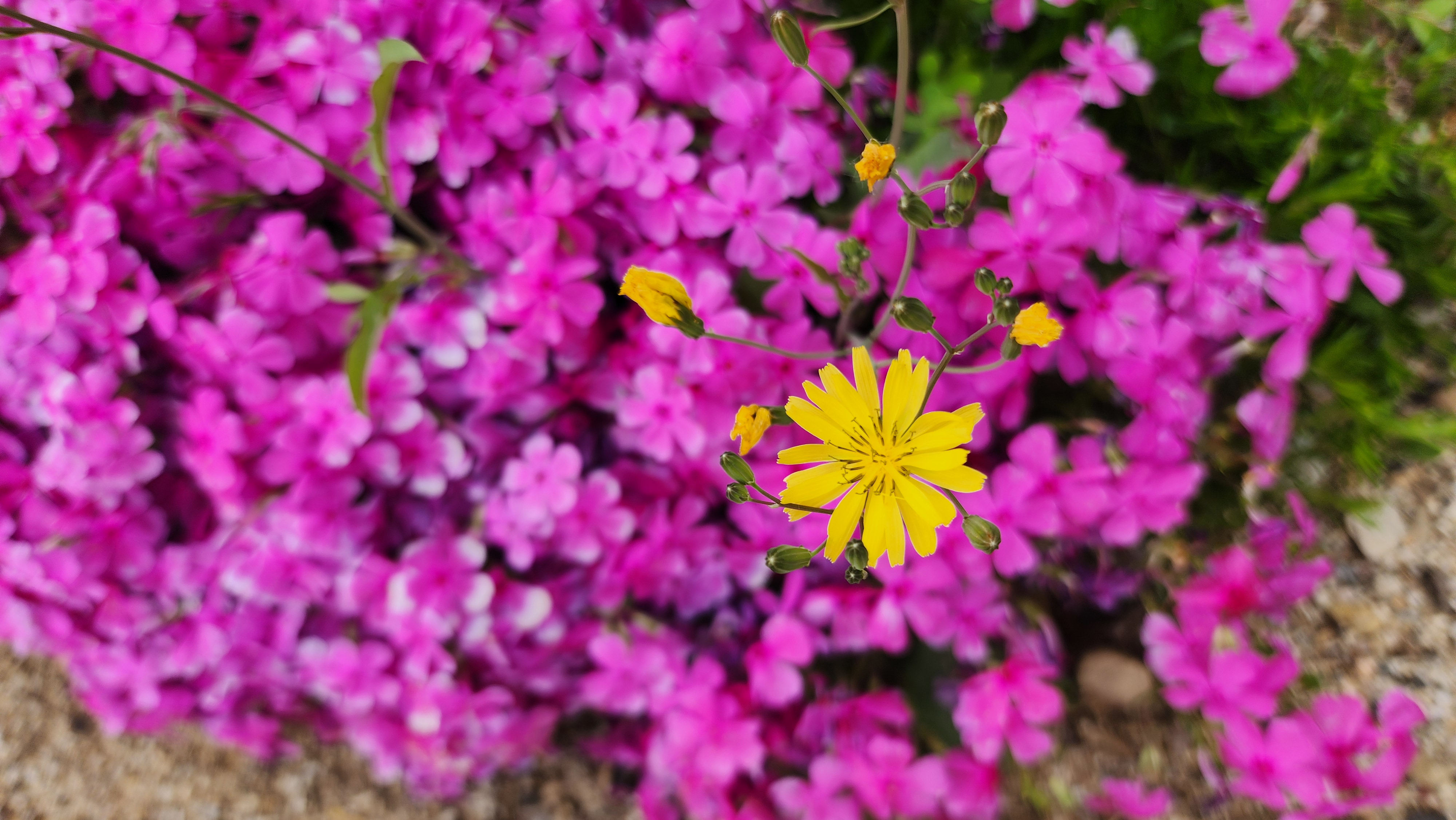 꽃잔디 속에 노란 꽃이 눈에 띄었다.